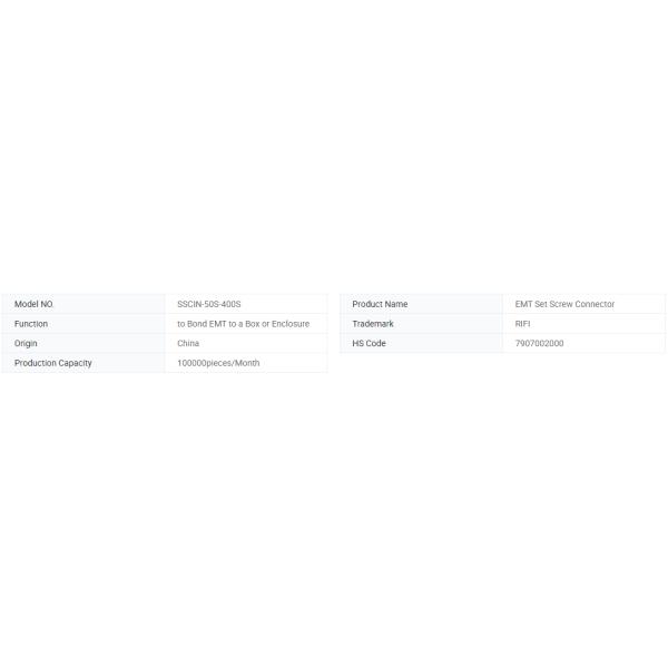 The EMT Set Screw Connector is a device used in electrical installations to securely connect EMT conduit. It ensures a reliable electrical pathway and protects wiring from damage. The connector is typically made of durable materials like steel or zinc-plated steel for longevity. Its set screw mechanism fastens the connector onto the EMT conduit, creating a tight and stable connection. The color of the EMT Set Screw Connector is often metallic or silver, serving for identification purposes rather than indicating its function. Overall, the EMT Set Screw Connector plays a vital role in establishing safe and efficient electrical connections, safeguarding wiring, and maintaining electrical integrity.